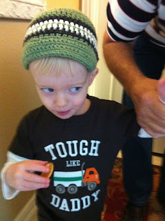 My big boys modeling their hats while Gigi and Boppa were babysitting them... Such sweet sweet faces and big blue eyes!